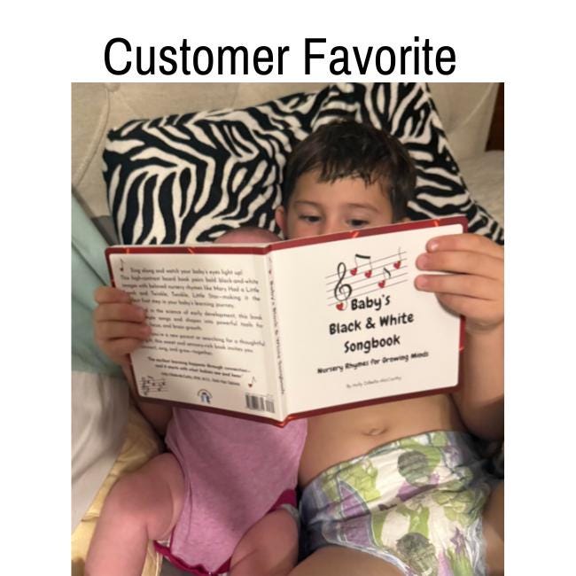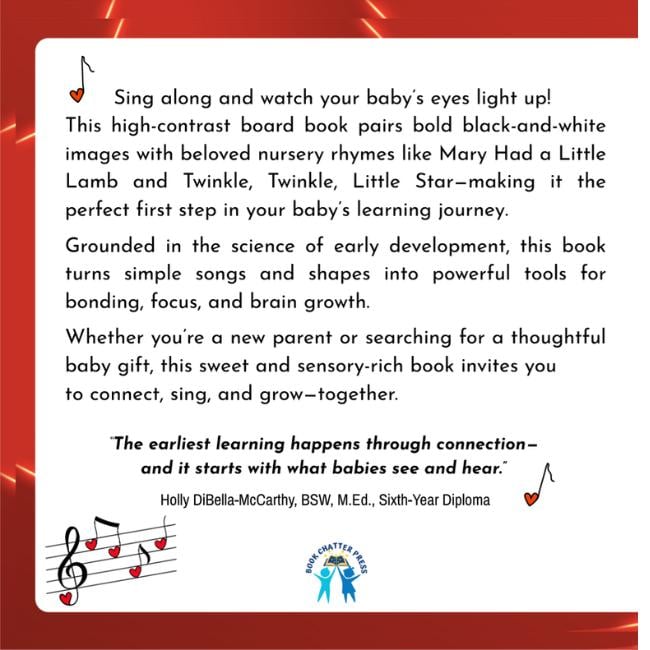 This engaging black and white board book pairs high-contrast images with the words to beloved nursery rhymes like Mary Had a Little Lamb and Twinkle, Twinkle, Little Star. It’s designed to help new parents sing, bond, and boost early brain development—all through joyful moments of reading and music.