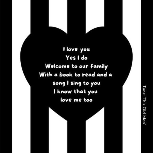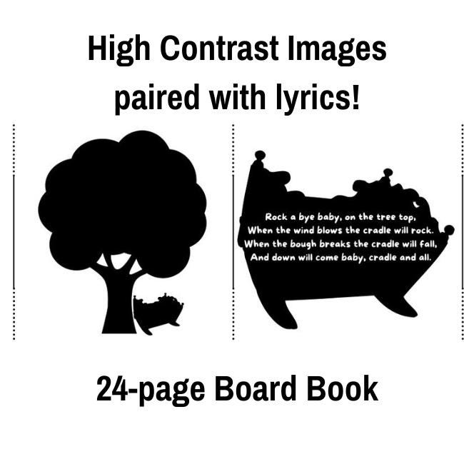 This high-contrast black and white baby board book is the perfect newborn gift for stimulating sight, sound, and connection. Designed by an early childhood educator, this beautiful sensory baby book helps you sing and bond with classic nursery rhymes.